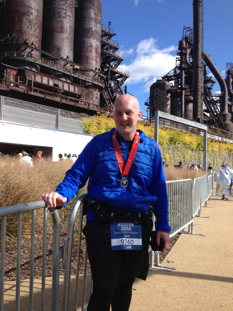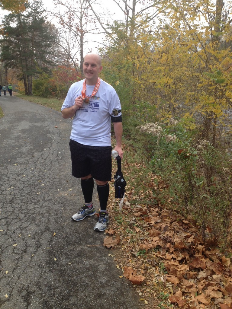 I completed my second marathon! Never thought I would say that. Richmond was a beautiful city to run through. Lots of interested sights, including a lot of Civil War landmarks. The weather, minus the wind, couldn’t have been better. I wish the medical support would have been more prominent (as in, no medical tents along the course), but the post-race area was decent even though I was at the tail end of the finishers.